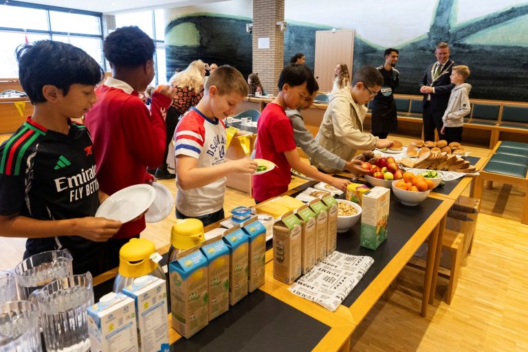 Burgemeester en leerlingen van OBS De Reijer ontbijten samen