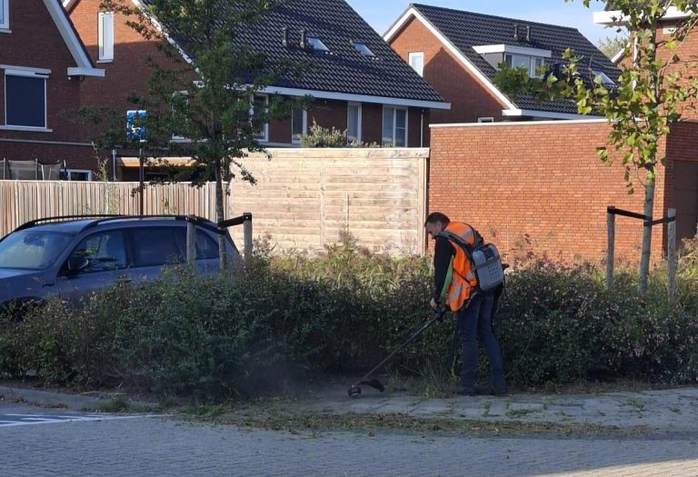 Onkruid op straat wordt verwijderd